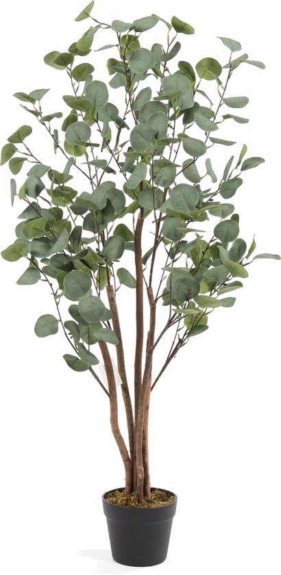 Eucalyptus Koala Artificiel 120cm L'Eucalyptus Koala Artificiel 120cm est une petite plante d'Eucalyptus artificielle particulièrement naturelle. L'Eucaliptus artificiel ne possède pas moins de cinq troncs en bois naturel. Les branches d'eucalyptus s'élèvent de manière ludique sur ces troncs. Les feuilles de la plante artificielle Eucaplytus ressemblent également aux vraies. Les feuilles ont la forme et la couleur naturelles des véritables plantes d'eucalyptus. Les feuilles présentent même une très fine veine lumineuse visible. Juste réel! Les troncs en bois de ce Koala d'Eucalyptus Artificiel 120 cm s'enroulent également de manière aléatoire. Le tout semble très naturel et attrayant. Cette imitation d'eucalyptus est définitivement une plante artificielle belle et robuste de bonne qualité. En plus de cette variante de 120 cm de haut, Kunstpalm.nl propose également un plus grand spécimen d'eucalyptus artificiel.