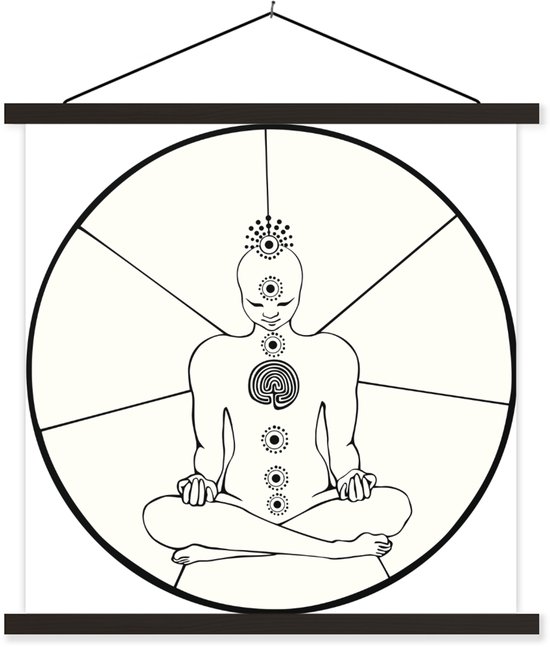 Art Line illustration des lamelles d'affiches textielposter sept chakras noir 90x90 cm - impression photo sur plaque scolaire (décoration murale salon / chambre à coucher)