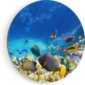 Artaza Dibond Cercle Mural Pêche avec Récif de Corail dans l'Océan - Ø 40 cm - Klein - Cercle Mural - Tableau Rond - Pour Intérieur et Extérieur
