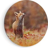 Artaza Dibond Cercle Mural Renard dans la Forêt d'Automne - Ø 60 cm - Cercle Mural - Peinture Ronde - Pour Intérieur et Extérieur