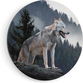 Artaza Dibond Cercle Mural Tête de Loup Aux Yeux Bleus - Loup - Ø 70 cm - Cercle Mural - Tableau Rond - Pour Intérieur et Extérieur