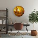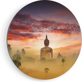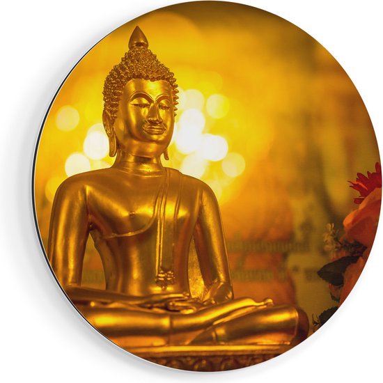 Artaza Dibond Wall Circle - Statue Bouddha Doré - Ø 50 cm - Klein - Wall Circle - Tableau Rond - Pour Intérieur et Extérieur