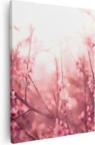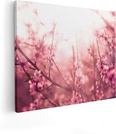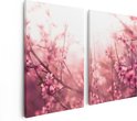 Artaza - Diptyque de peinture sur toile - Arbre à fleurs rose avec soleil - 80x60 - Photo sur toile - Impression sur toile