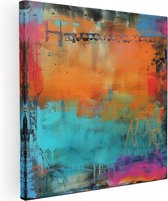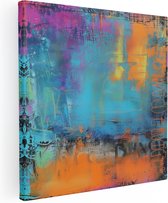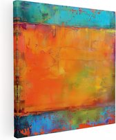 Artaza Peinture sur toile abstraite avec couleurs bleu et Oranje – 60 x 60 – Décoration murale – Photo sur toile – Impression sur toile