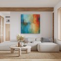 Artaza Peinture sur toile abstraite avec couleurs bleu, Oranje et rouge – 80 x 80 – Groot – Photo sur toile – Impression sur toile