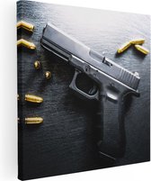 Artaza - Peinture sur toile - Ancienne table de bureau avec un pistolet et un chapeau - 80 x 80 - Groot - Photo sur toile - Impression sur toile