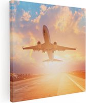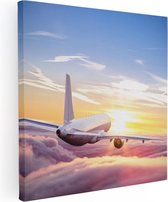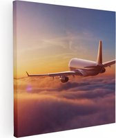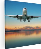 Artaza Peinture sur toile Avion au-dessus de la mer au coucher du soleil - 50 x 50 - Photo sur toile - Impression sur toile