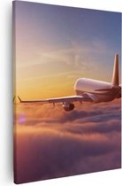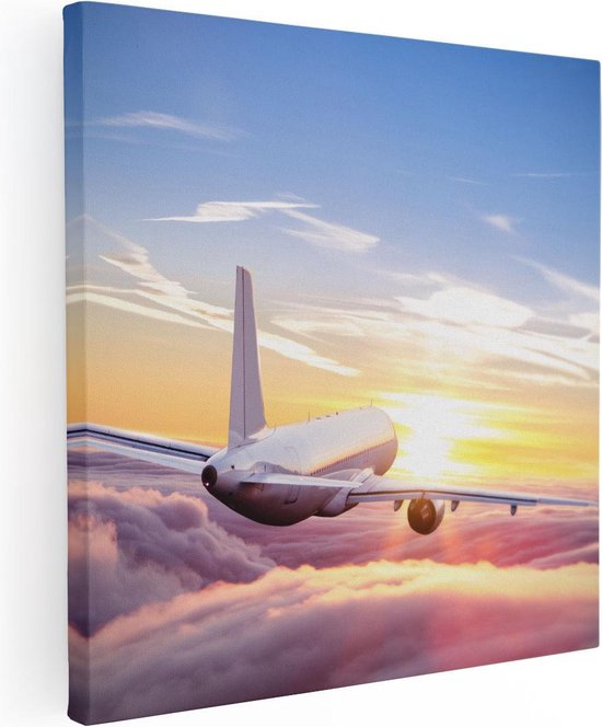 Artaza - Peinture sur toile - Avion dans les nuages au coucher du soleil - 90 x 90 - Groot - Photo sur toile - Impression sur toile