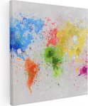 Artaza - Peinture sur toile - Carte du Wereldkaart avec des taches de peinture - Abstrait - 70 x 70 - Photo sur toile - Impression sur toile