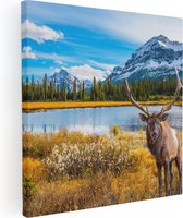 Artaza - Peinture sur toile - Cerf au bord d'un lac - 80x40 - Photo sur toile - Impression sur toile