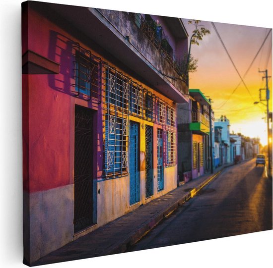 Voulez-vous acheter une peinture sur toile de haute qualité avec l'image de maisons colorées à Cuba au coucher du soleil que vous pourrez accrocher dans votre chambre ou votre salon ? Alors vous avez trouvé ce que vous cherchiez avec Artaza ! La toile de haute qualité est magnifique et vous permet de profiter des combinaisons de couleurs vives. De plus, l'intensité des couleurs et le contraste saisissant garantissent que la peinture prend vie et que vous pouvez en profiter pendant des années.