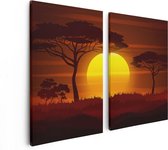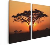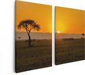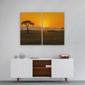 Artaza Peinture sur toile Diptyque Lever de soleil dans la savane avec un arbre - 80 x 60 - Photo sur toile - Impression sur toile