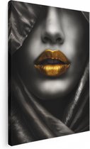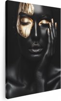 Artaza Peinture sur toile Femme avec maquillage noir et doré sur son visage – 30 x 40 – Klein – Photo sur toile – Impression sur toile