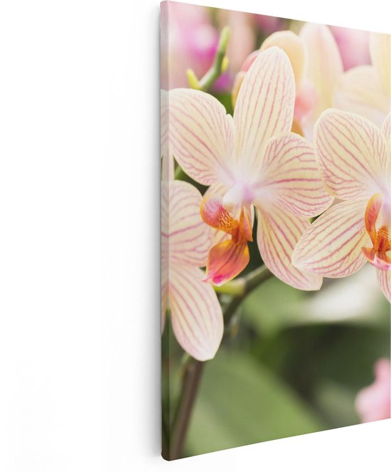 Artaza Peinture sur Toile Fleurs d'Orchidées Witte Rayées - 60x90 - Photo sur Toile - Impression sur Toile