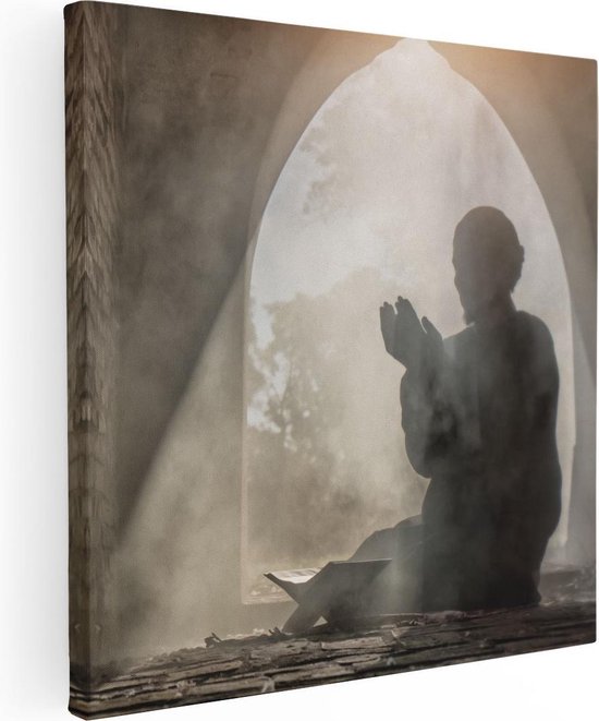 Artaza Peinture sur toile Homme en prière dans une vieille mosquée – 30 x 30 – Klein – Photo sur toile – Impression sur toile