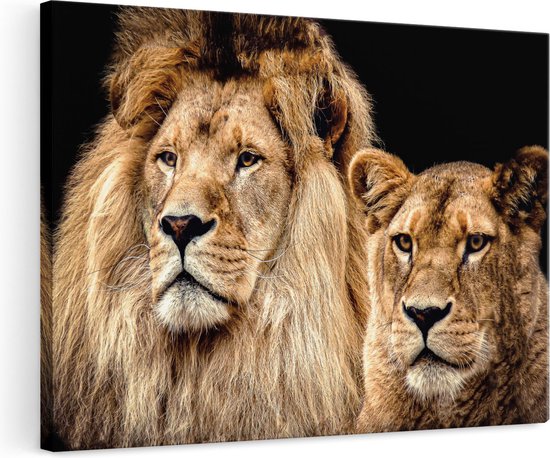 Artaza - Peinture sur Toile - Lion et Lionne - Couple Amoureux - 120x80 - Groot - Tableau sur Toile - Impression sur Toile