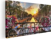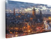 Artaza - Peinture sur toile - Maisons d'Amsterdam dans la soirée avec des lumières - 120x40 - Groot - Photo sur toile - Impression sur toile