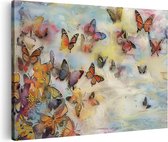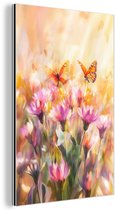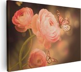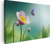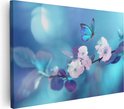 Artaza - Peinture sur toile - Papillon bleu avec une Bloem rose - 120 x 80 - Groot - Photo sur toile - Impression sur toile