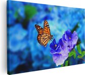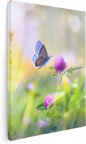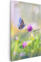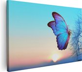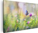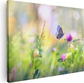 Artaza Peinture sur toile Papillon bleu près d'une Bloem violette – 30 x 20 – Klein – Photo sur toile – Impression sur toile