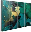 Artaza Peinture sur Toile Quadriptyque Art Abstrait - Vert avec Or - 160x120 - Groot - Photo sur Toile - Impression sur Toile
