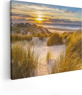 Artaza Peinture Sur Toile Sentier Dans Les Dunes Avec La Mer En Fond - Zwart Wit - 120x80 - Groot - Photo Sur Toile - Impression Sur Toile