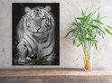 Voulez-vous acheter une peinture sur toile de haute qualité avec l'image d'un tigre aux yeux bleus en noir et blanc que vous pourrez accrocher dans votre chambre ou votre salon ? Alors vous avez trouvé ce que vous cherchiez avec Artaza ! L'intensité des couleurs et le contraste d'une grande netteté garantissent que le tigre prend vie et que vous pouvez en profiter pendant des années.