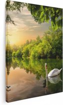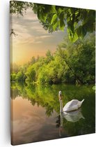 Voulez-vous acheter une peinture sur toile de haute qualité avec l'image d'un cygne sur l'eau dans la forêt que vous pouvez accrocher dans votre chambre ou dans le salon ? Alors vous avez trouvé ce que vous cherchiez avec Artaza ! La toile de haute qualité est magnifique et vous permet de profiter des combinaisons de couleurs vives. De plus, l'intensité des couleurs et le contraste extrêmement net garantissent que le cygne prend vie et que vous pouvez en profiter pendant des années.