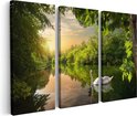 Artaza Peinture sur toile Triptyque Cygne sur l' Water dans la forêt - 60 x 40 - Klein - Photo sur toile - Impression sur toile