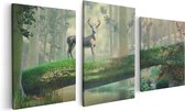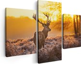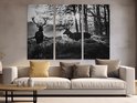 Artaza Peinture sur Toile Triptyque Deux Cerfs au Coucher du Soleil - Wit Zwart - 180x120 - Groot - Photo sur Toile - Impression sur Toile
