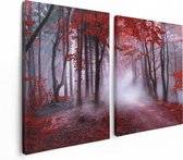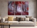 Artaza Peinture sur Toile Triptyque Forêt Rouge avec Arbres - 150x100 - Groot - Photo sur Toile - Impression sur Toile