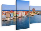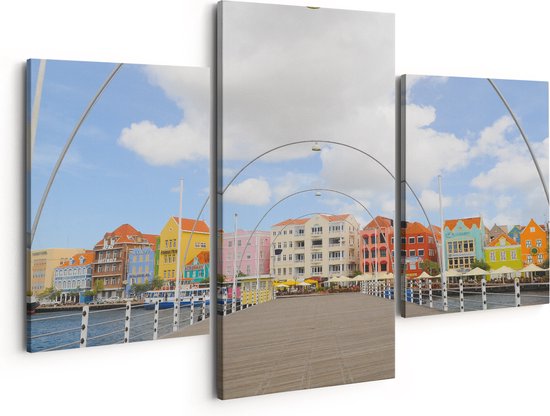 Artaza Peinture sur toile Triptyque Maisons colorées de Willemstad à Curaçao - 150x120 - Groot - Photo sur toile - Impression sur toile