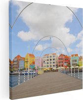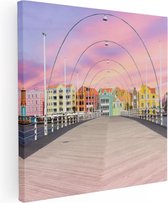 Artaza Toile Peinture Willemstad Maisons Colorées à Curaçao - 80x80 - Groot - Photo sur Toile - Impression sur Toile