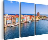 Artaza Peinture sur Toile Triptyque Centrum Willemstad à Curaçao - 180x120 - Groot - Photo sur Toile - Impression sur Toile