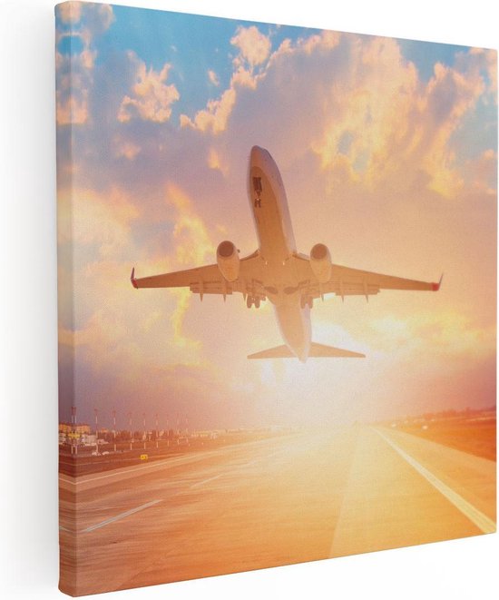 Artaza Peinture sur toile Un avion décolle sur la piste avec le soleil - 50 x 50 - Photo sur toile - Impression sur toile
