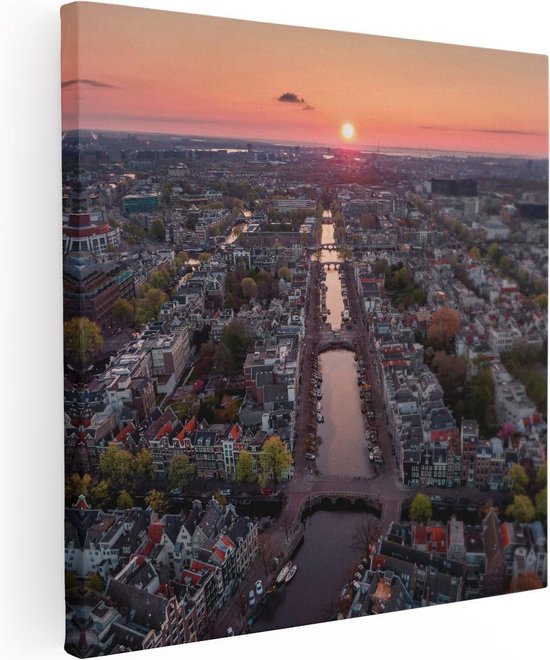Artaza Peinture sur toile Vue de dessus Amsterdam avec coucher de soleil - 50 x 50 - Photo sur toile - Impression sur toile