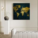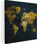 Artaza - Peinture sur toile - Wereldkaart doré - 90 x 90 - Groot - Photo sur toile - Impression sur toile