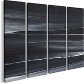 Artaza - Quadriptyque de peinture sur toile - Art abstrait - Zwart avec lignes Witte - 80x60 - Photo sur toile - Impression sur toile