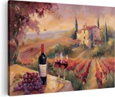 Artaza Tableau sur toile Deux Verres de Vin et de raisins sur un tonneau au coucher du soleil - 60x60 - Décoration murale - Photo sur toile - Impression sur toile
