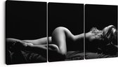 Artaza Tableau sur Toile Triptyque Femme Nue au Lit - Erotiek - Zwart Wit - 180x80 - Groot - Photo sur Toile - Impression sur Toile