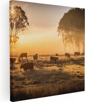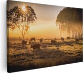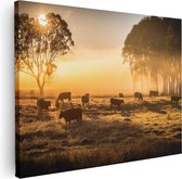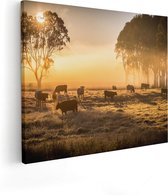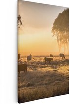 Artaza Tableau sur toile Troupeau de vaches dans le pré avec lever de soleil - 30x40 - Klein - Tableau sur toile - Impression sur toile