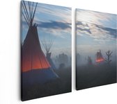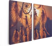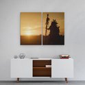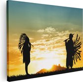 Artaza Toile Peinture Diptyque Indien avec une Lance au Coucher du Soleil - 80x60 - Photo sur Toile - Impression sur Toile