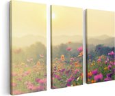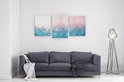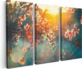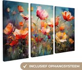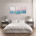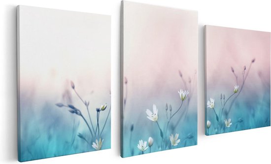 Artaza - Triptyque de peinture sur toile - Fleurs Witte sur fond Blauw - 120x60 - Tableau sur toile - Impression sur toile
