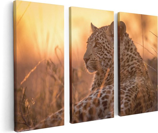 Artaza - Triptyque de peinture sur toile - Léopard se reposant au soleil - 120x80 - Photo sur toile - Impression sur toile