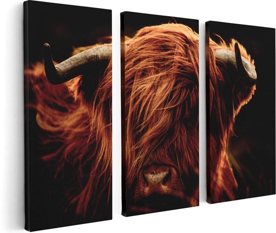 Artaza - Triptyque de peinture sur toile - Tête de vache écossaise Highlander - Couleur - 120x80 - Photo sur toile - Impression sur toile