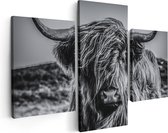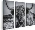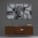 Artaza - Triptyque de peinture sur toile - Vache écossaise Highlander - Zwart Wit - 120x80 - Photo sur toile - Impression sur toile