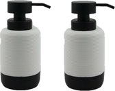 Pompe/distributeur de savon blanc/céramique noire 10 x 17 cm. Distributeur de savon élégant pour la cuisine, les toilettes et/ou la salle de bain. Matière: céramique. Taille : 10 x 17 cm.