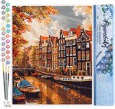 Arty Bee® Peinture par nombre d' Adultes - Peinture par numéro - Paquet de Hobby sur cadre avec vernis - Amsterdam By Night 40x50cm