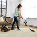 De plus, cet aspirateur vous offre une liberté de mouvement inégalée grâce à son long rayon d'action. Avec un câble de 5,5 mètres et un tuyau d'aspiration extra long, vous pouvez atteindre (8,5 m) les coins les plus éloignés de votre maison sans avoir à changer constamment de prise. Cela signifie moins d’interruptions et plus de temps pour profiter d’un environnement impeccablement propre.