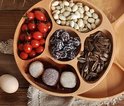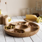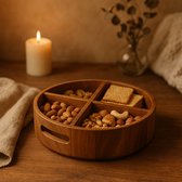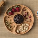 Assiette à grille Nourriture en bois de forme ronde, assiette divisée Nourriture desserts, collations, Sub-grille, Services de table , plateau, assiettes de contrôle des portions, pour fruits secs, Snacks, fruits (25 cm)