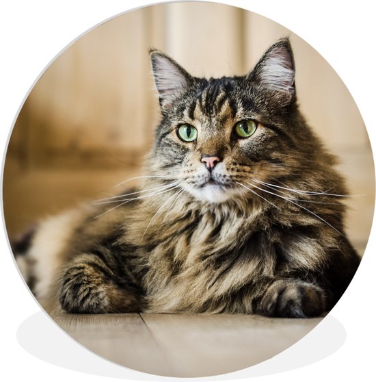 Assiette en plastique cercle mural chat Maine Coon rayé noir et marron ⌀ 90 cm - impression photo sur cercle mural / cercle vivant (décoration murale)